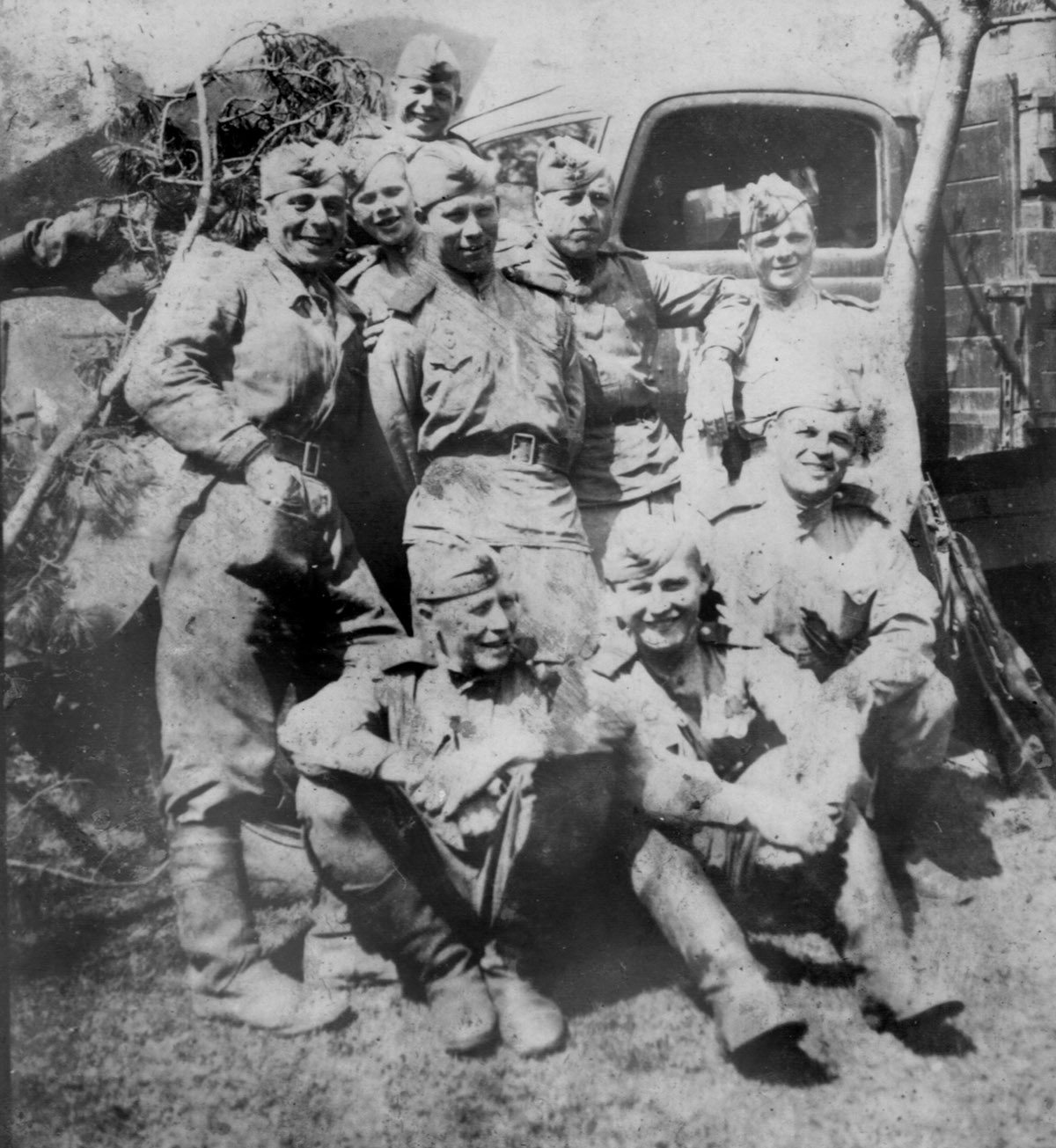 Могу только предположить, где мой дед на общей фотографии: либо слева в нижнем ряду (сидит), либо в самом центре (стоит).