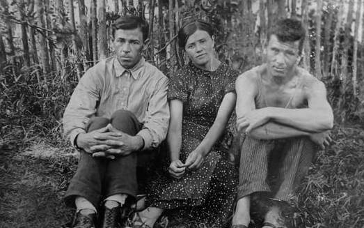 На семейной фотографии – братья Богдановы: Ефим Михайлович, Василий Михайлович и их сестра Богданова Степанида Михайловна. Когда началась война, Степанида Михайловна жила в Москве. Ее призвали на трудой фронт – она копала окопы под Москвой. Степанида Михайловна – труженица тыла.