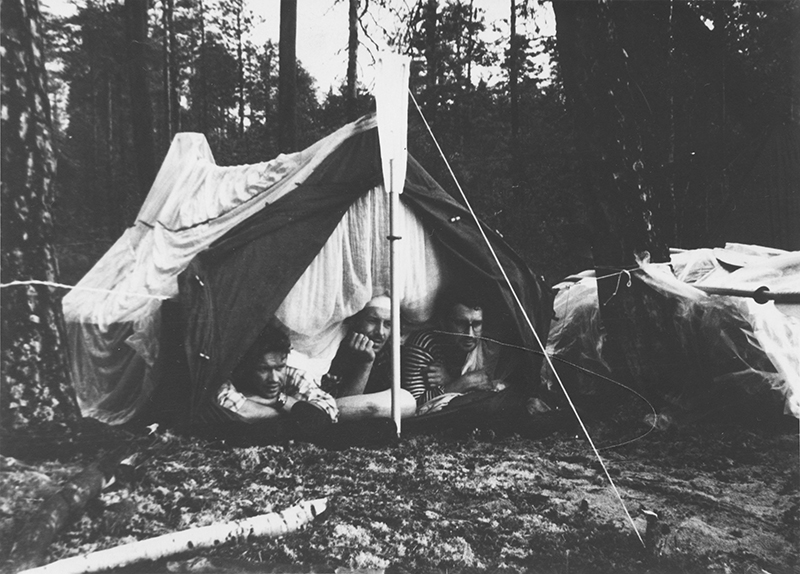 Накрапывает дождь. Ветер холодный. Но день сегодня в отличие от предыдущих можно назвать отличным. На небе синие окна и иногда светит солнце. Когда мы входили в устье Куземы, Белое море нас встретило солнцем. Поставили палатки, пошел маленький дождь. Приготовили обед. Я после обеда сходил на ближайший мыс в сторону моря. Места красивейшие. Побережье Белого моря как бы вобрало все самое лучшее Карелии. Здесь все породы деревьев, растущие в Карелии, причем в лучших формах, все виды ягодников, живописнейшие, красивые берега и островки песчаные и скалистые, много грибов. Мыс, который я посетил, и берег, по которому я шел, был насыщен красивейшими кадрами. Я нащелкал почти целую пленку за час прогулки. Кадры настоящей северной природы красивые и строгие, в них какая-то суровость. От них трудно оторваться. По-моему, творческие командировки художникам нужно устраивать именно в такие места.