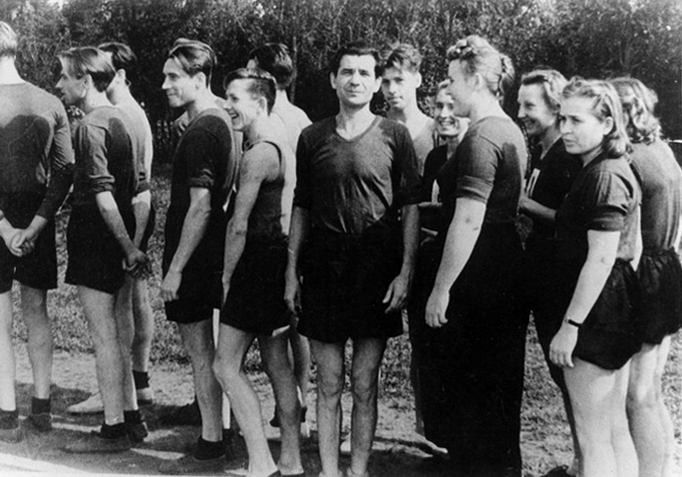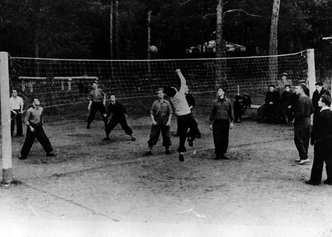 В учебных заведениях крупных городов в 40-50-е годы волейбол считался одним из перспективных видов спорта. А поскольку прибывающие в Обнинск молодые специалисты практически все знали толк в волейболе и любили играть в него, то получалось так, что существенную часть населения города составляли именно любители волейбола, и он был воистину народным видом спорта.И эту любовь первые жители Обнинска пронесли через всю жизнь – от молодых лет до ветеранского возраста. Он был самым доступным видом спорта. Ровная полянка в лесу, сетка между деревьями да простейшая разметка уже давали возможность проведения игр. Именно с такой площадки и начался обнинский волейбол, и в конце сороковых годов такая площадка была самым популярным местом, где по вечерам собиралось чуть ли все население объекта.
