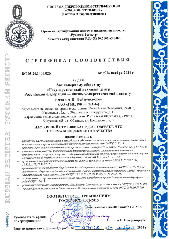 полное – Акционерное общество «Государственный научный центр Российской Федерации – Физико-энергетический институт имени А.И. Лейпунского»