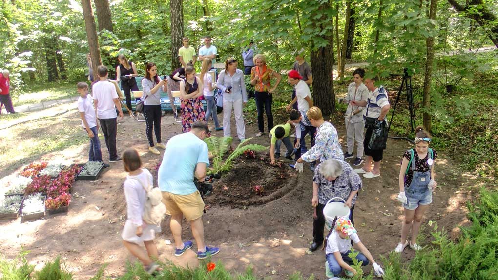 Учащиеся семейного клуба, ученики атомного класса 16 школы и ученики 13 школы Обнинска с самого начала мероприятия активно включились в уборку территории: подготовили почву для традиционной закладки клумбы «Умное сердце», убрали ветки и листву вдоль тропинок и вокруг любимой лавочки И.В. Курчатова. Позднее, сидя на ней, желающие нарисовали коллективную картину.