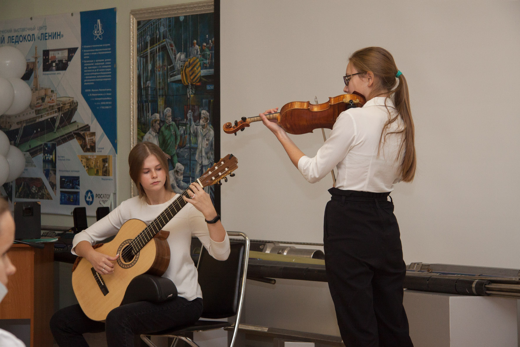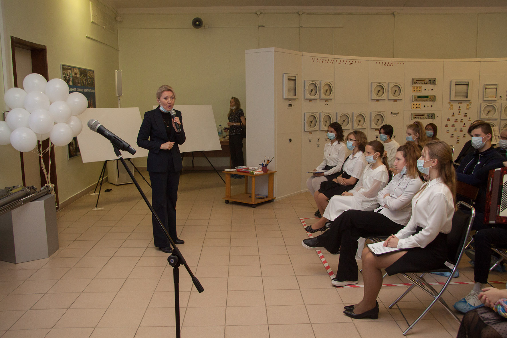 Ветераны отрасли, студенты, школьники, преподаватели и учащиеся Детской школы искусств № 1, члены семейного клуба «Детский сад Курчатова» выступили с творческими номерами в зале пульта управления Первой в мире АЭС.