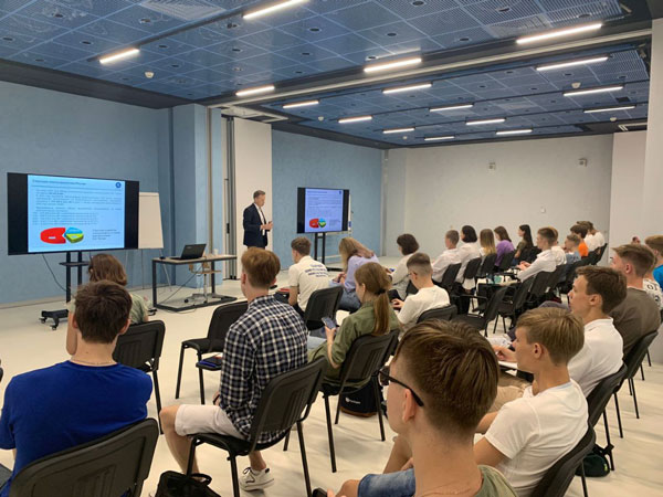 Методист направления Андрей Морозов познакомил школьников с текущим состоянием и перспективами развития атомной отрасли, реакторами малой мощности, а также отвечал за организацию научной составляющей программы.