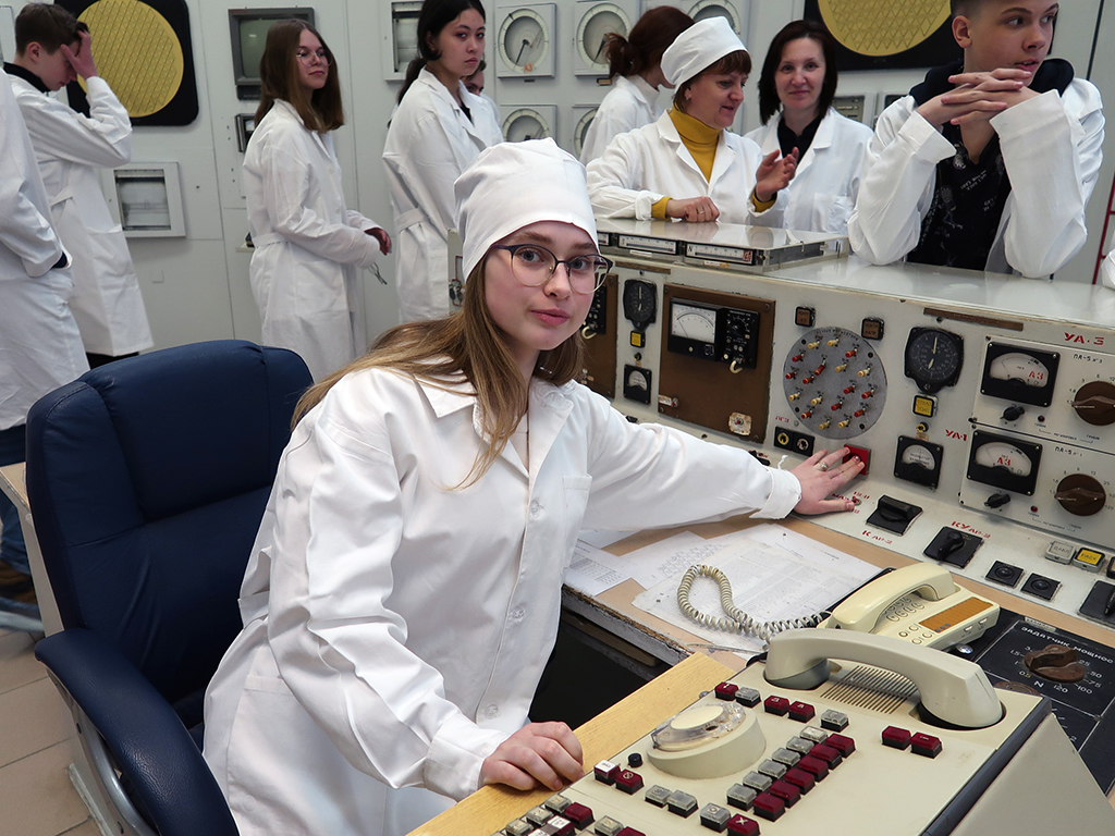 Участники детского технопарка «Кванториум-33» (Владимир) посетили Первую в мире АЭС, расположенную в первом российском наукограде – Обнинске. Во время экскурсии ребята впервые увидели крышку настоящего ядерного реактора, центральный пульт управления и пульт дозиметрического контроля, а также побывали в кабинете директора атомной электростанции.