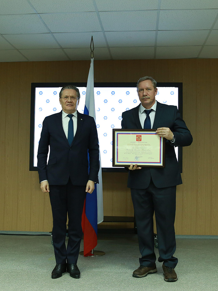 Почётной грамотой Президента РФ награждены начальник лаборатории Геннадий Михайлов, Благодарностью Президента РФ награжден инженер Александр Игитов, знаком отличия «Академик И.В. Курчатов» 1 степени отмечен заместитель директора отделения Владимир Литицкий, знаком отличия «Академик И.В. Курчатов» 4 степени награждены руководитель проектного офиса по реализации проекта МБИР Вероника Долгих и ведущий научный сотрудник Геннадий Тихонов, знаком отличия «За заслуги перед атомной отраслью» 2 степени отмечен начальник департамента реакторного материаловедения и испытаний Сергей Шулепин, знаком отличия «За вклад в развитие атомной отрасли» 2 степени награждены начальник отделения ядерной энергетики Юлия Кузина и начальник лаборатории Олег Левин, знаком отличия «За заслуги перед атомной отраслью» 3 степени награжден Антон Овечкин, Почетной грамотой Государственной корпорации по атомной энергии «Росатом» награждена начальник лаборатории Ирина Московченко.