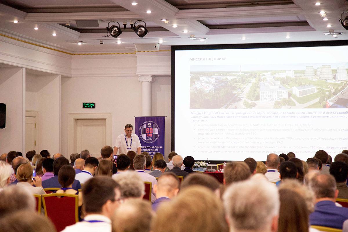 «Замечательным поводом нашей конференции стал юбилей отделения реакторного материаловедения. Исторически сложилось так, что это подразделение является локомотивом не только институтской деятельности, но и отраслевого реакторного материаловедения. Именно на нашей площадке реализованы и развиваются самые перспективные методики испытаний и исследований, накоплен самый большой экспериментальный материал о поведении облученных конструкционных материалов и ядерного топлива реакторов различного назначения», – сказал директор ГНЦ НИИАР Александр Тузов, открывая конференцию. Он представил доклад о настоящем и будущем института в качестве базовой площадки отрасли по реакторному материаловедению.