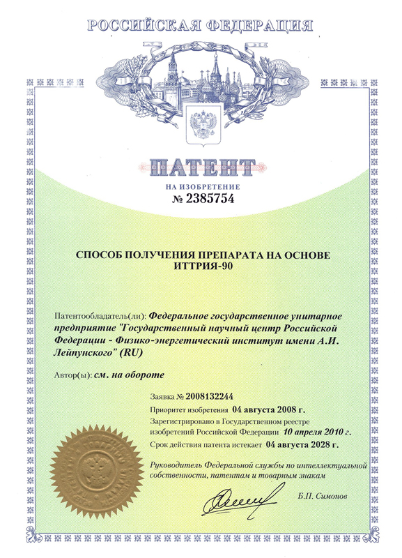 10 | 2441687 | 10.02.2012 | Способ получения препарата на основе радия-224 | Нерозин Н.А., Шаповалов В.В., Ермолов Н.А., Котовский А.И, Ермолов Н.А., Котовский А.И. |