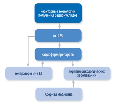 Технология выделения 225Ас, разработанная специалистами АО «ГНЦ РФ – ФЭИ», служит для получения высокочистого радиоизотопа 225Ас, который может быть использован в ядерной медицине как самостоятельно (для разработки радиофармпрепаратов нового поколения), так и в генераторах 225Ас/213Bi.