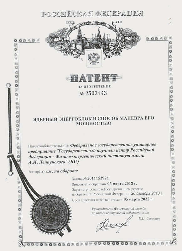 1. | Патент РФ | №2502143 | 20.12.2013 | Ядерный энергоблок и способ маневра его мощностью | Тревгода Марк Михайлович, Будылов Евгений Григорьевич, Ошейко Юрий Викторович |